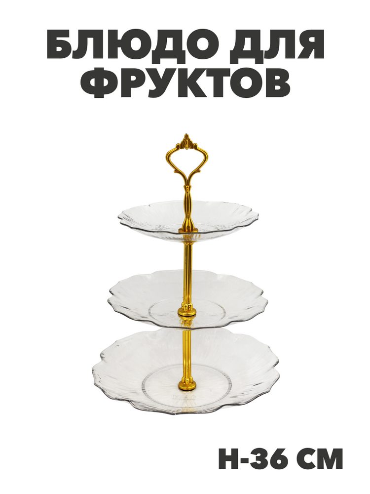 Блюдо для фруктов, 3 яруса, пластик, h-36 см, d-25, 21, 17 см, m3060603179