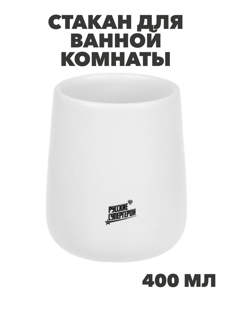 BY Русские Супергерои Стакан для ванной комнаты, 400 мл, керамика, белый, n3727-gl-463-439
