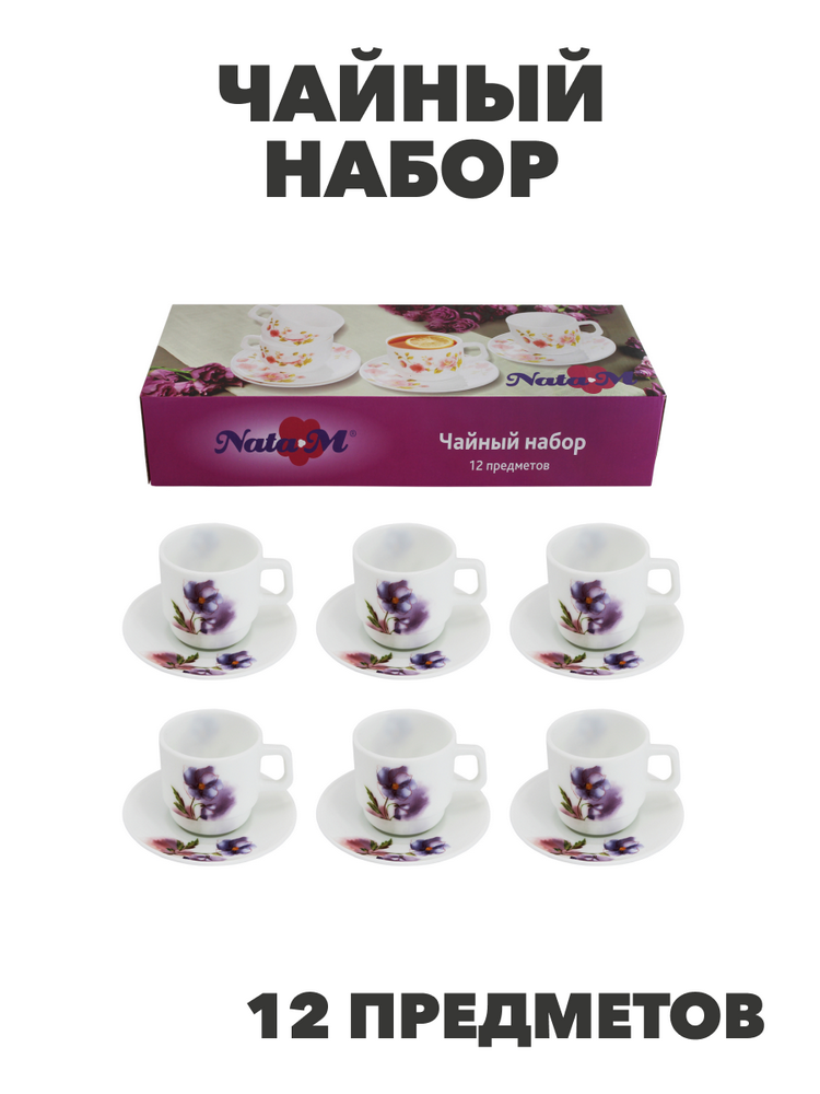 Чайный набор NataM 12пр (чашка 190мл-6шт, блюдце 140мм-6шт) в под.упаковке (Н202083 Кассандра), y306