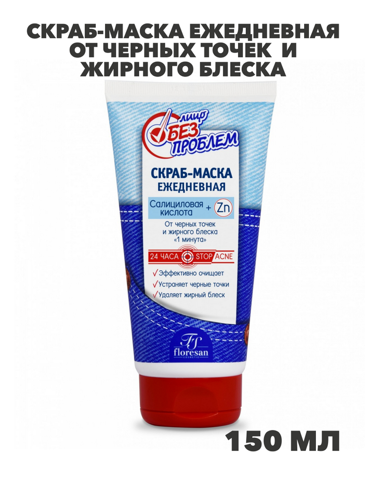 Флоресан, Floresan, Скраб-маска ежедневная от черных точек и жирного блеска «1 минута» «Лицо без проблем», Ф-11, 150 мл, n3553151100