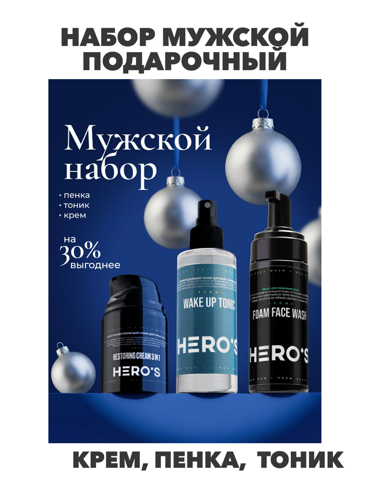 Hero's Набор мужской подарочный / Косметика уходовая за лицом для мужчин, n4368-217291