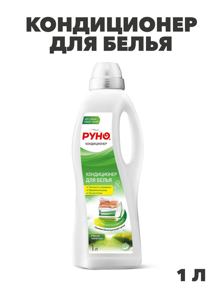 Кондиционер для белья РУНО концентрат. Для ручной и машинной стирки. Обеспечивает эффективный и бережный уход за тканью, придает белью невероятную воздушность и мягкость, объемность ткани, предотвращает потерю цвета.