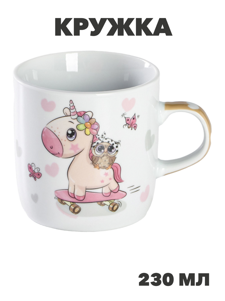 Кружка детская Доляна «Совёнок и единорог», 230 мл, керамика, белая, n3904-5034610