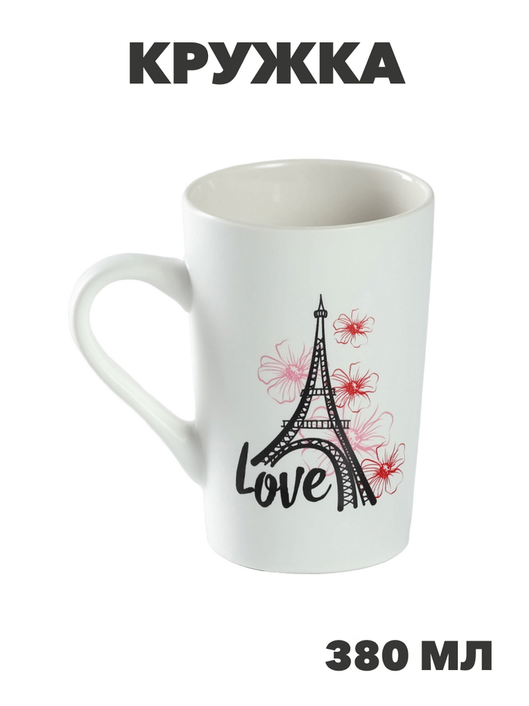 Кружка Доляна «Любовь в Париже», 380 мл, фарфор, белая, n3907-5278180