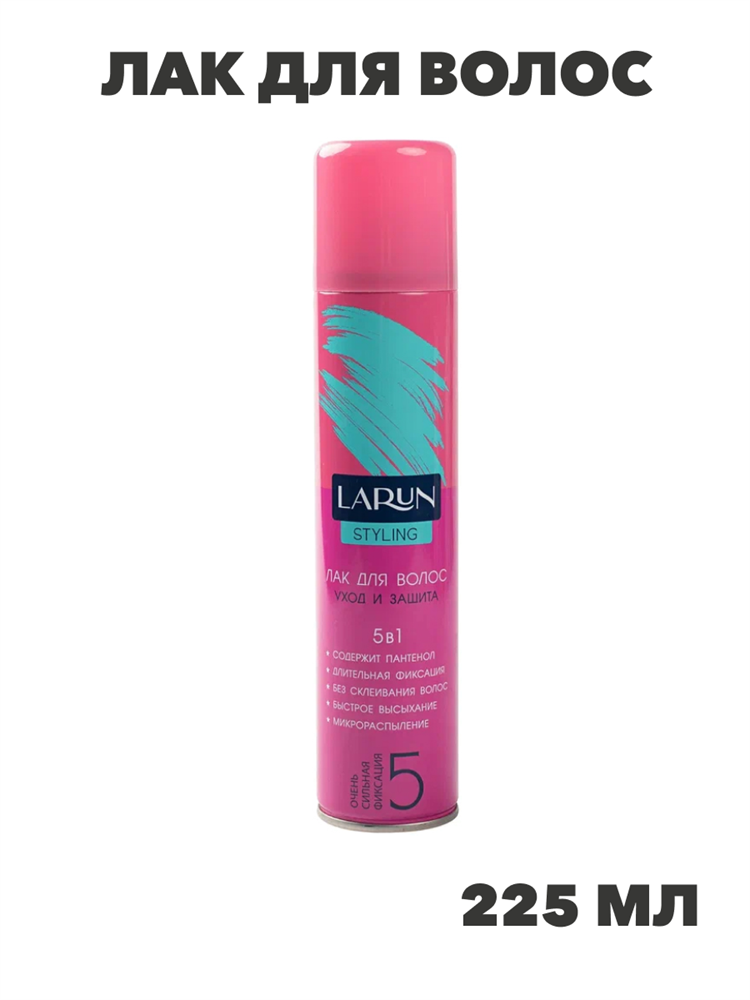 Лак для волос LARUN 225мл Уход и защита 5в1 очень сильной фиксации, n3931-551312
