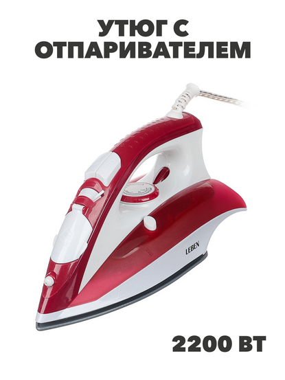 LEBEN Утюг с отпаривателем 2200 Вт, подошва - керамическое покрытие, ES-5198, МИКС, n3581-gl-249-017