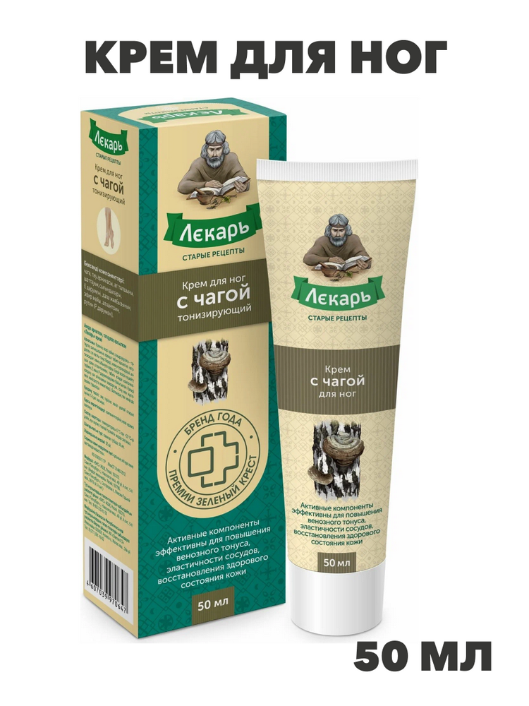 Лекарь Крем для ног тонизирующий при отеках с чагой 50мл, средство увлажняющее, y2050203285