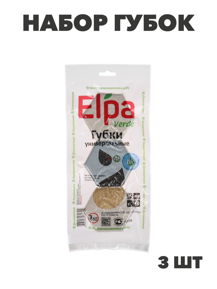Набор губок Elpa Verde – это практичное и удобное решение для мытья посуды и уборки различных поверхностей. Комплект состоит из трех губок, поставляемых в компактной вакуумной упаковке, что обеспечивает их гигиеничность и экономию места при хранении до начала использования.