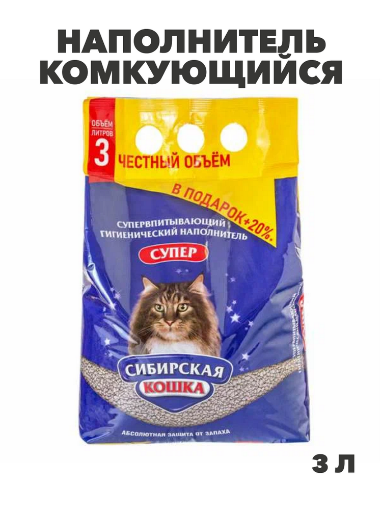 Наполнитель Сибирская Кошка Супер 3л комкующийся, y3020112895