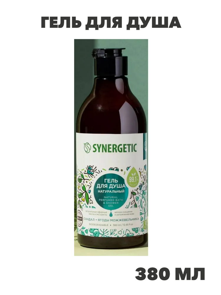 Натуральный биоразлагаемый гель для душа Сандал и ягоды можжевельника Synergetic, 380мл, n4344-334090