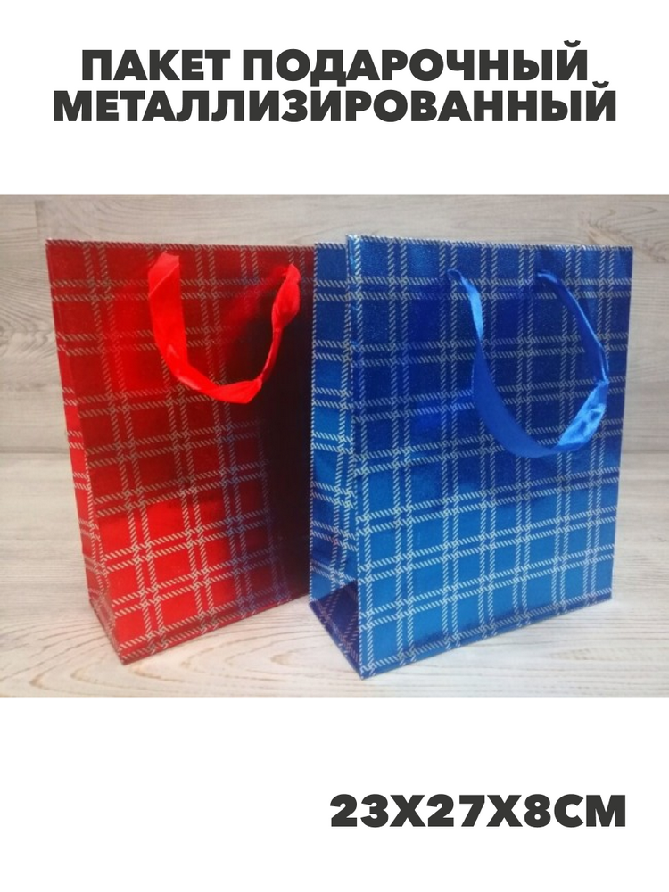 Пакет подарочный металлизированный "Клетка" 23х27х8см., y3060803048