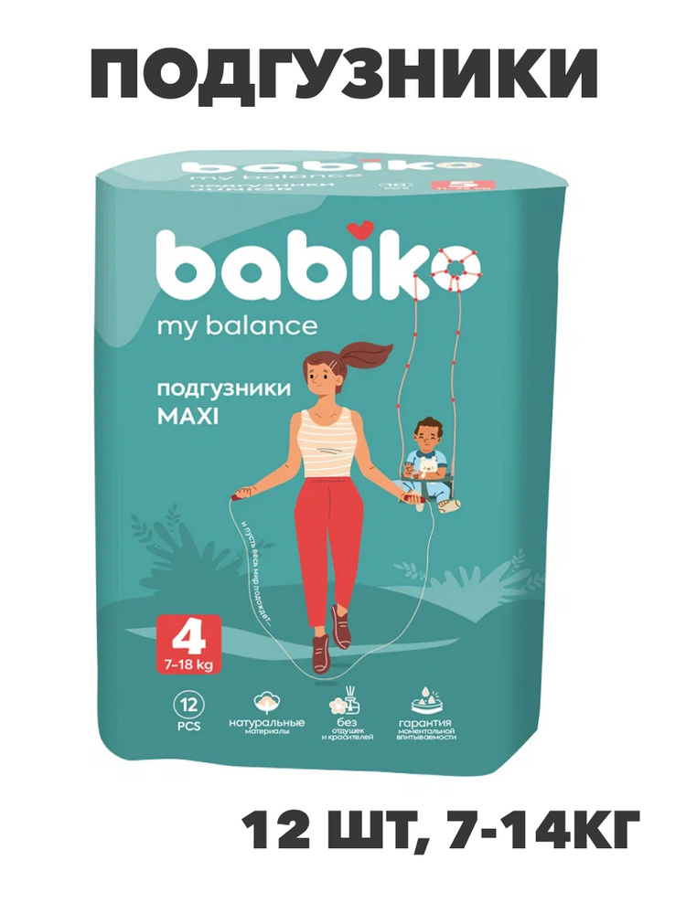 Подгузники BABIKO My Balance 4 12шт 7-14кг, n3960-540209