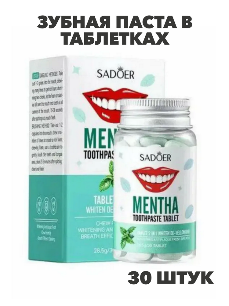 SADOER Зубная паста в таблетках с экстрактом мяты, 28.5г, 30шт., n3929-102040