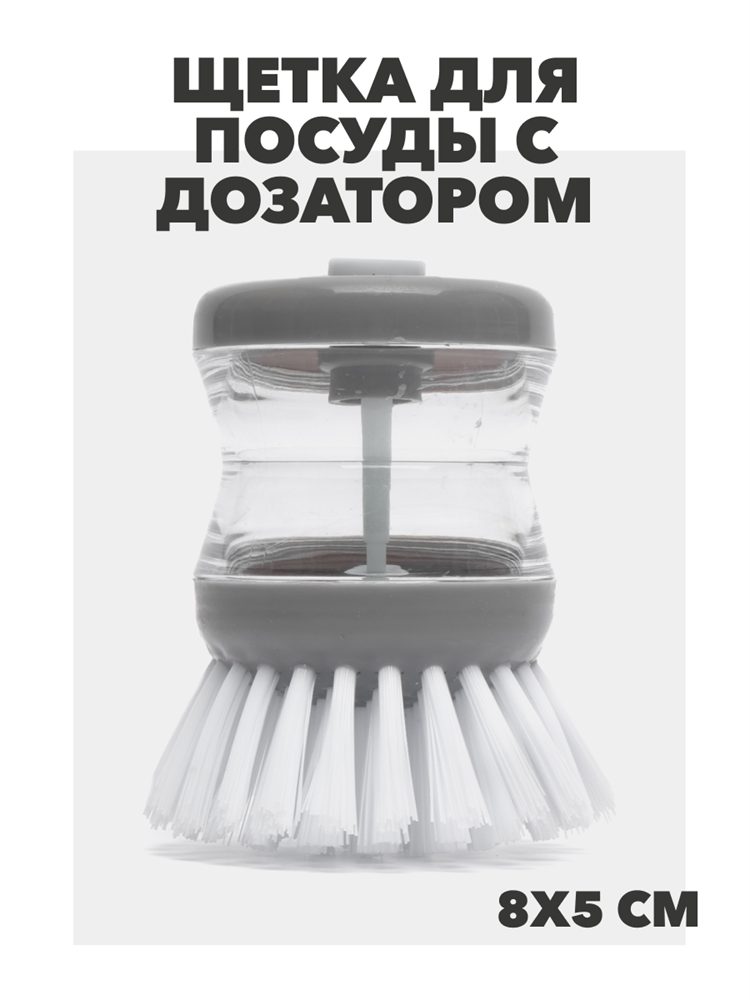 Щетка с дозатором под моющее средство для мытья посуды - один аксессуар совмещает все, что нужно для очищения тарелок, кастрюль, форм для выпечки и сковородок. Наполняем резервуар моющей жидкостью и приступаем к наведению порядка. Расход мыльного раствора контролируется нажатием кнопки. 6 причин купить щетки для мытья посуды с дозатором: •отличная замена металлическому скребку •прозрачный резервуар — видно степень наполненности •жесткая щетина для выведения сильных загрязнений •легко отмывает жирные пятна и засохшие кусочки пищи •оберегает руки от контакта с чистящими веществами •можно использовать для чистки ванны и линолеума.