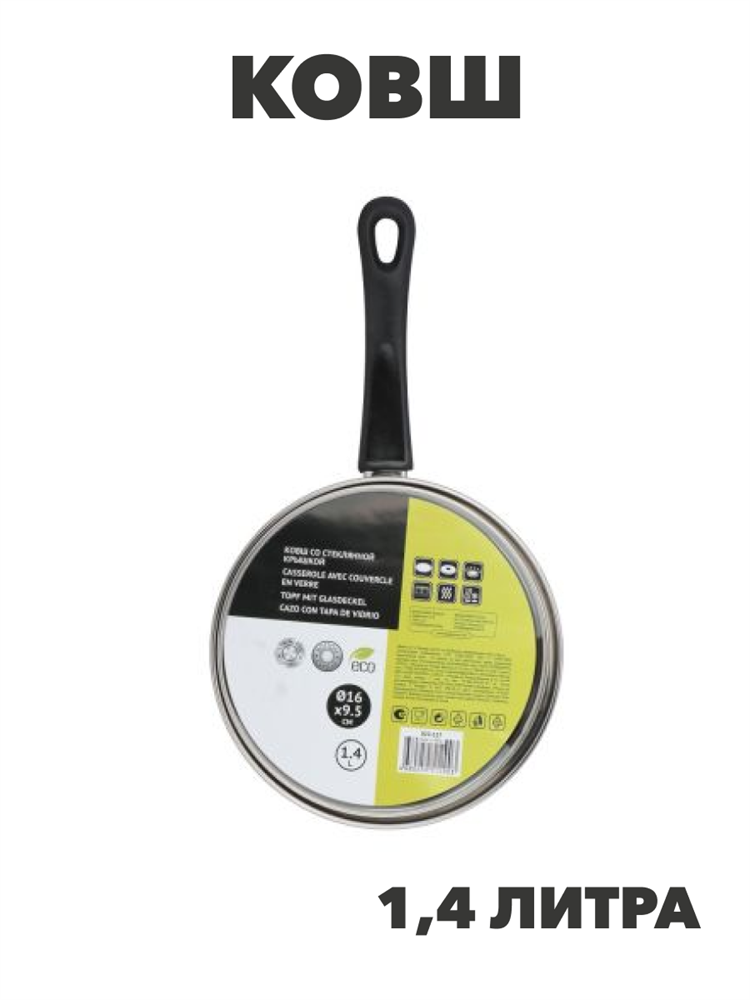 Стрейтон Ковш 16х9,5см, 1,4л, со стекл. крышкой, n3642-gl-822-117