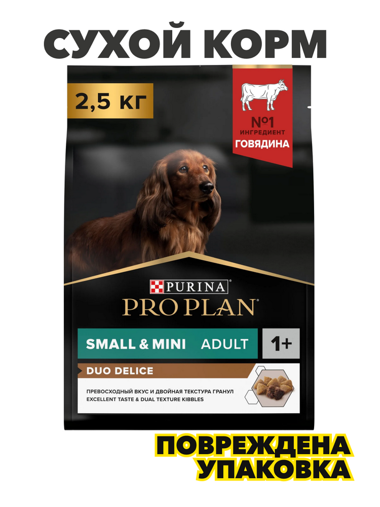 Сухой корм PRO PLAN DUO DELICE для взрослых собак мелких и карликовых пород с превосходным вкусом и двойной текстурой гранул с говядиной, 2.5 кг, n4240-181972