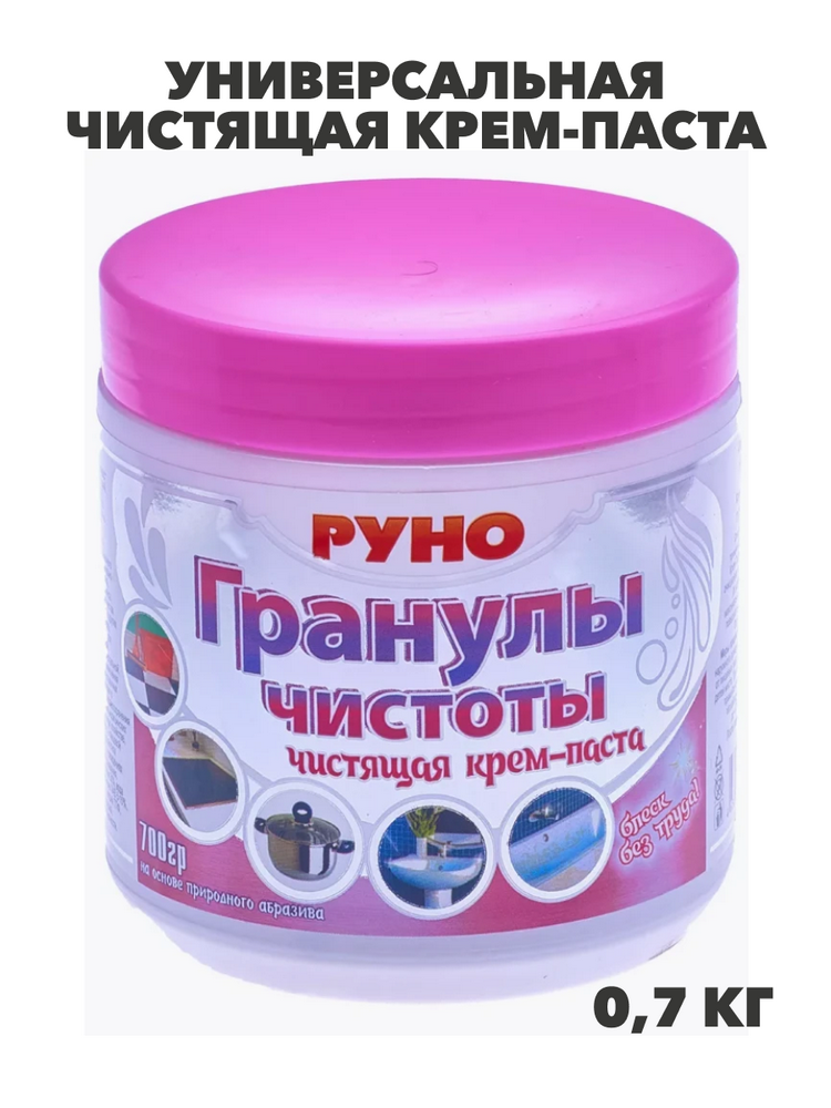 -ОПИСАНИЕ: многофункциональная универсальная крем - паста РУНО Гранулы Чистоты, на основе мягкого