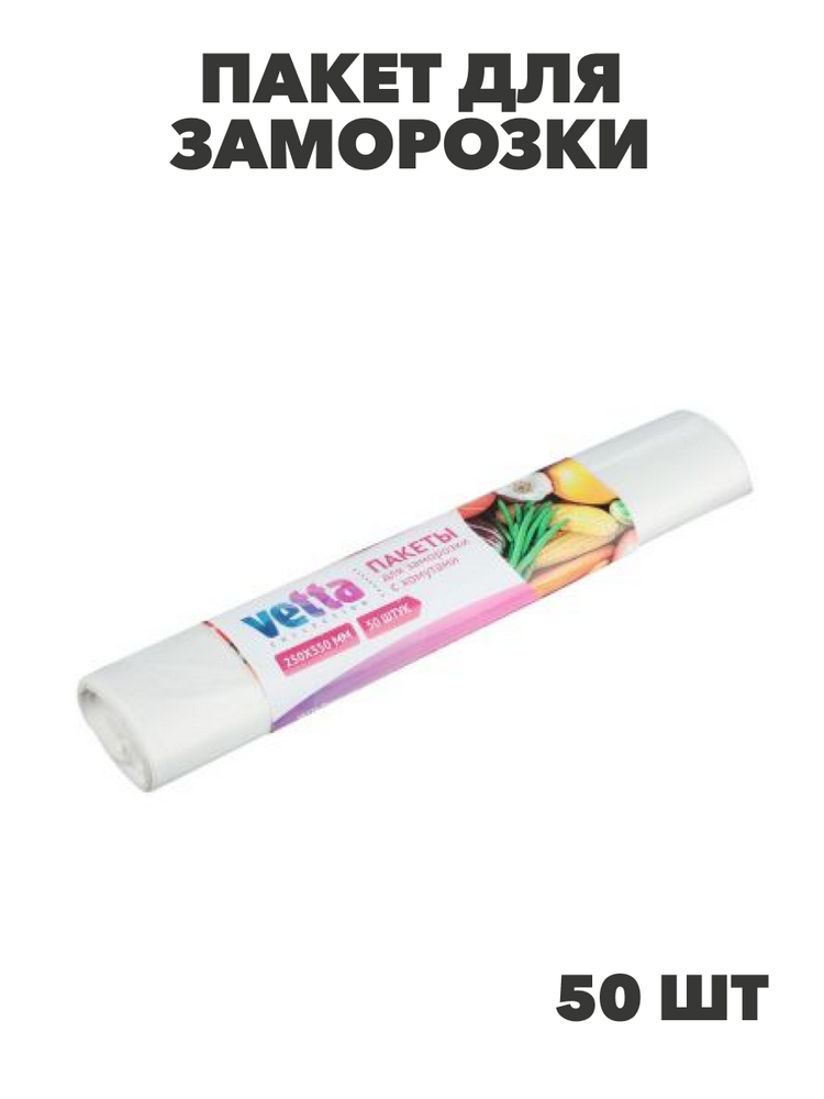 VETTA Пакет для заморозки с хомутами, 50шт, 3л, 250х350мм в рулоне, 16мкм, n3718-gl-438-134