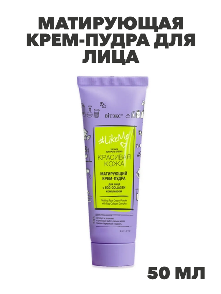 Витэкс Матирующая крем-пудра для лица LikeMe Красивая кожа с EGC-Collagen комплексом 24 часа, 50 мл, n4333-679727